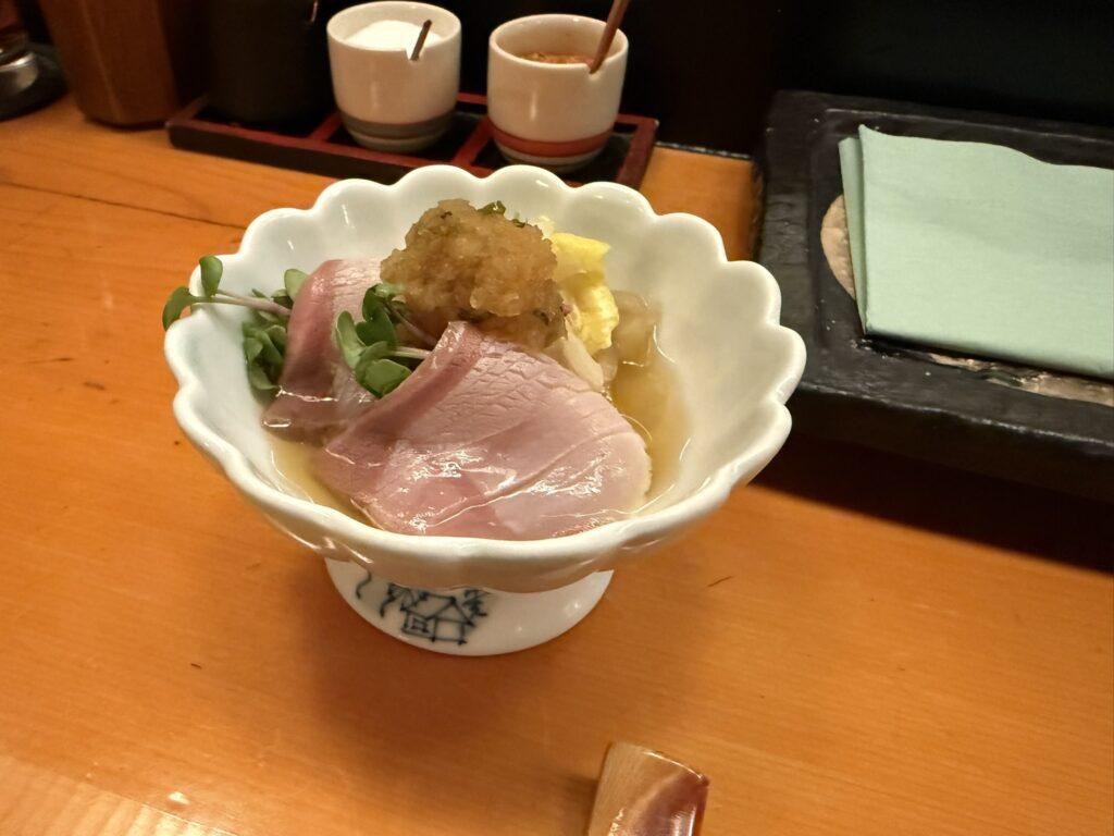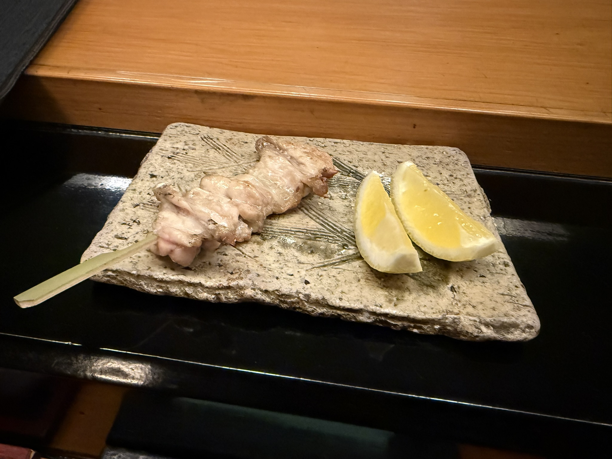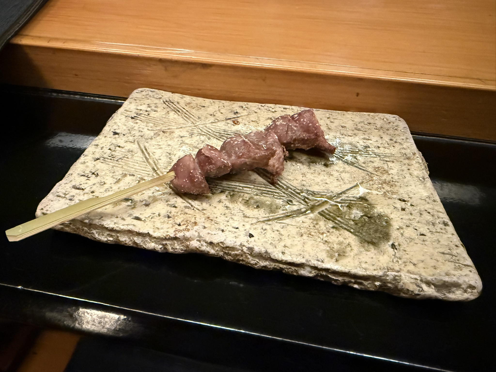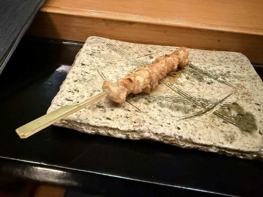 目の前で丁寧に焼き上げられる炭火串焼を眺めながら、ゆっくり食事を楽しめるのが魅力。炭火の香ばしい香りが店内に広がり、一品一品が出てくるたびに「次は何だろう」と自然と期待が高まります。静かな空間だからこそ、食事に集中できる贅沢な時間でした。