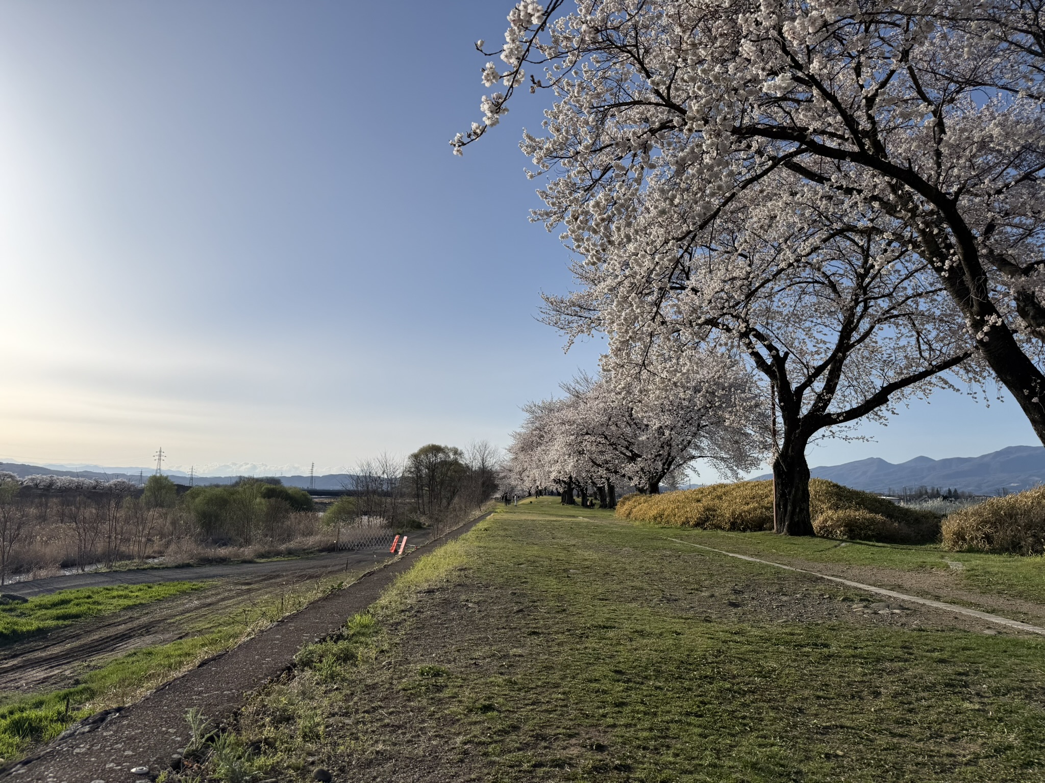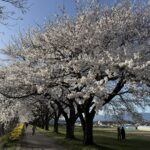 さくラさく小径とは、長野県佐久市中込の千曲川沿いに広がる、全長約1.5kmの遊歩道を中心とした公園です。千曲川の清らかな流れを生かし、「水・花・遊」の3つのゾーンで構成されています。「佐久」「桜」「咲く」に由来する名のとおり、春には満開の桜を見ることができます。