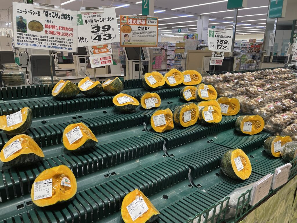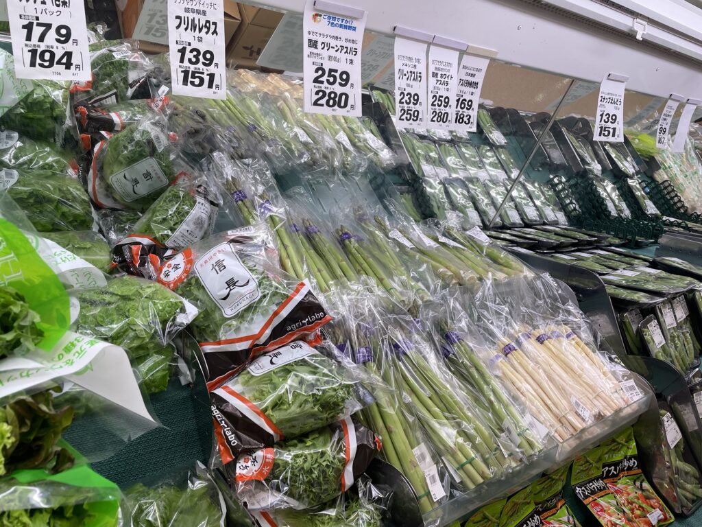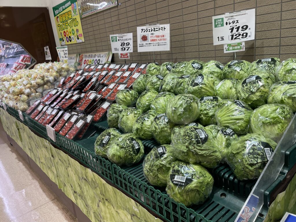 ツルヤ軽井沢店は公式LINEがあり、そちらのチラシに載っているその週のお得な野菜が入り口付近に並びます